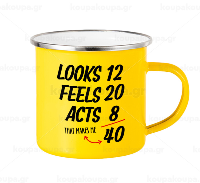 Looks, feels, acts LIKE your AGE, Yellow Enamel Metallic Cup 360ml