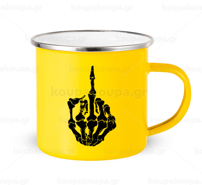 Middle finger, Yellow Enamel Metallic Cup 360ml