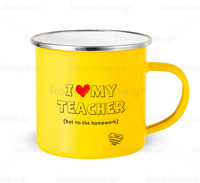 i love my teacher but no the homework outline, Yellow Enamel Metallic Cup 360ml