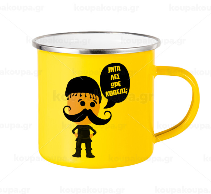 Κρητικός "Ίντα λες ωρέ κοπέλι", Yellow Enamel Metallic Cup 360ml
