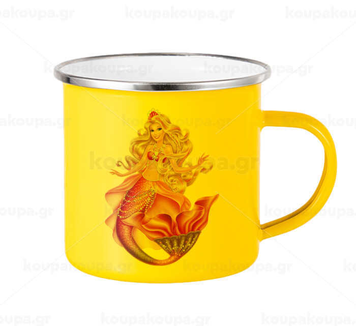 Barbie mermaid , Yellow Enamel Metallic Cup 360ml