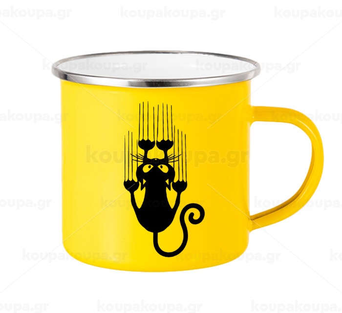 Cat scratching, Yellow Enamel Metallic Cup 360ml