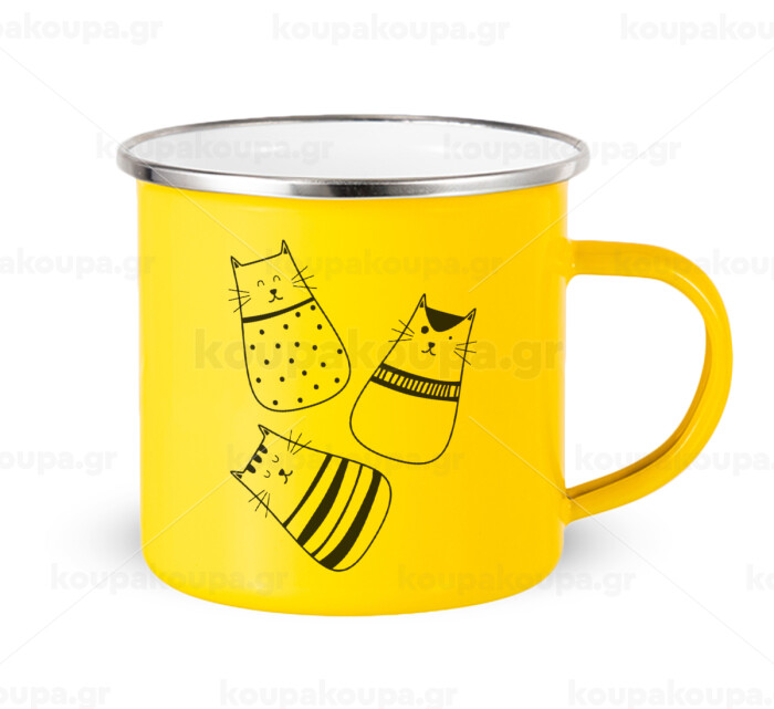 Cute cats, Yellow Enamel Metallic Cup 360ml
