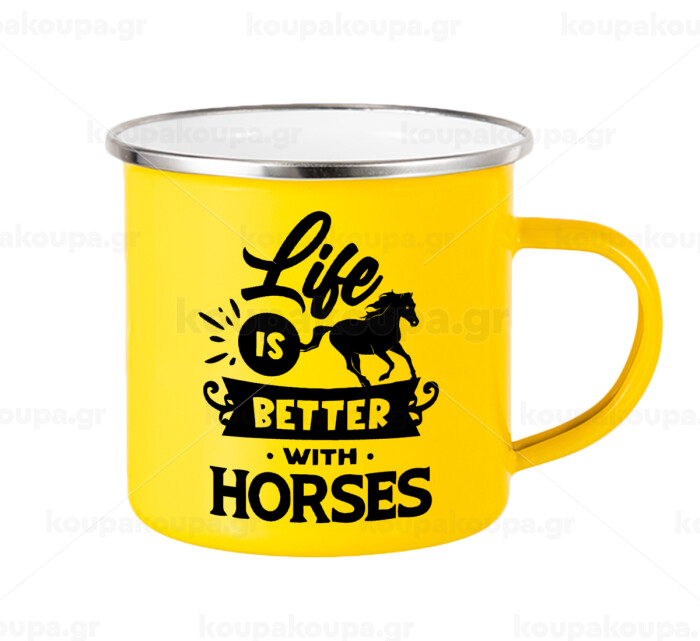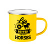 Life is Better with a Horses, Yellow Enamel Metallic Cup 360ml