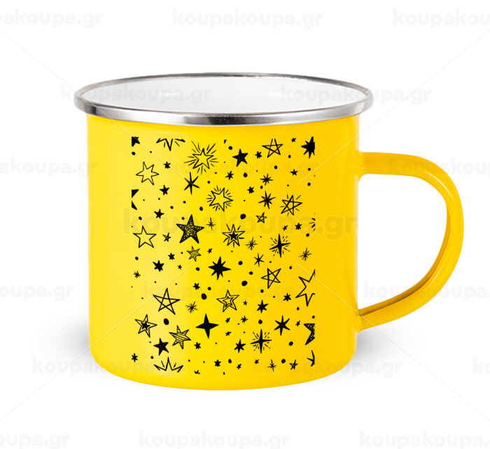 Doodle Stars, Yellow Enamel Metallic Cup 360ml
