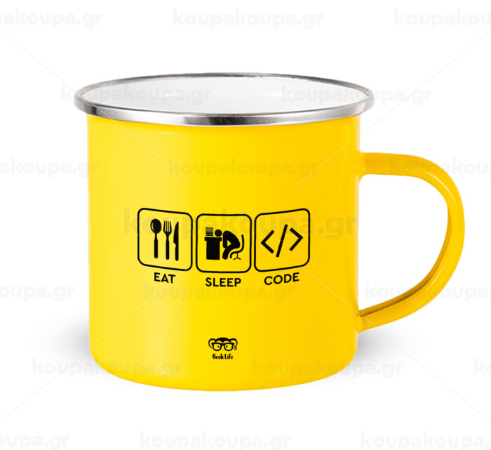 Eat Sleep Code, Yellow Enamel Metallic Cup 360ml