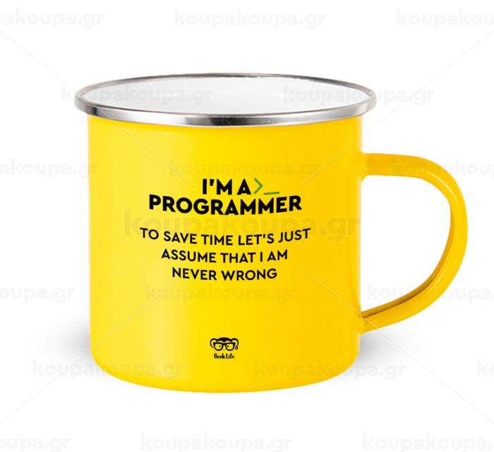 I’m a programmer Save time, Yellow Enamel Metallic Cup 360ml