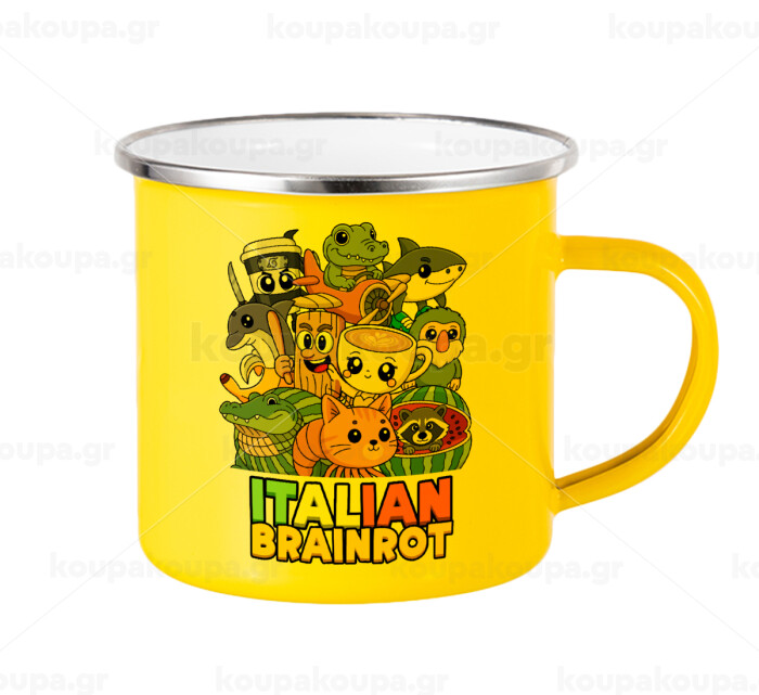 Italian Brainrot friends, Yellow Enamel Metallic Cup 360ml