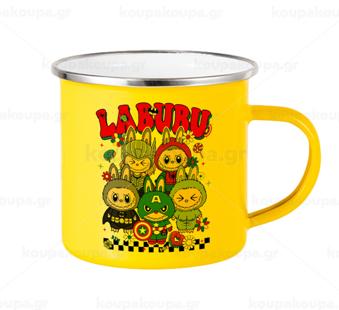 Labubu superheroes, Yellow Enamel Metallic Cup 360ml