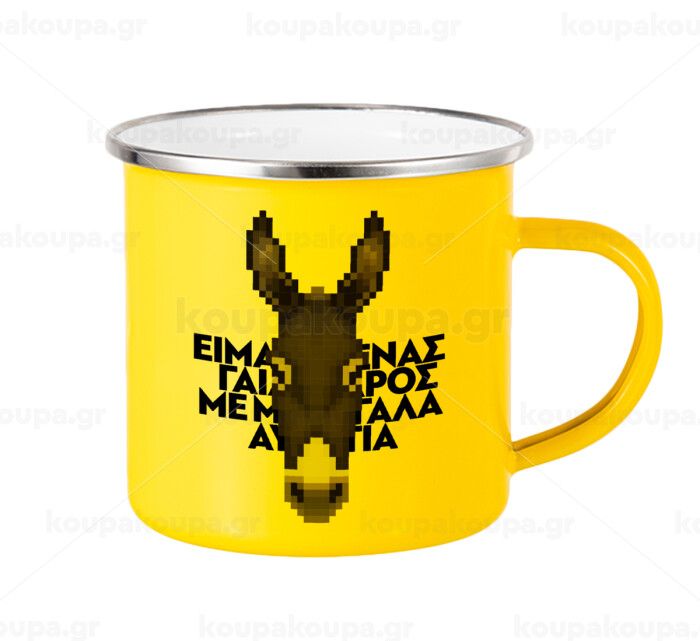 Είμαι ένας γάιδαρος με μεγάλα αυτιά., Yellow Enamel Metallic Cup 360ml