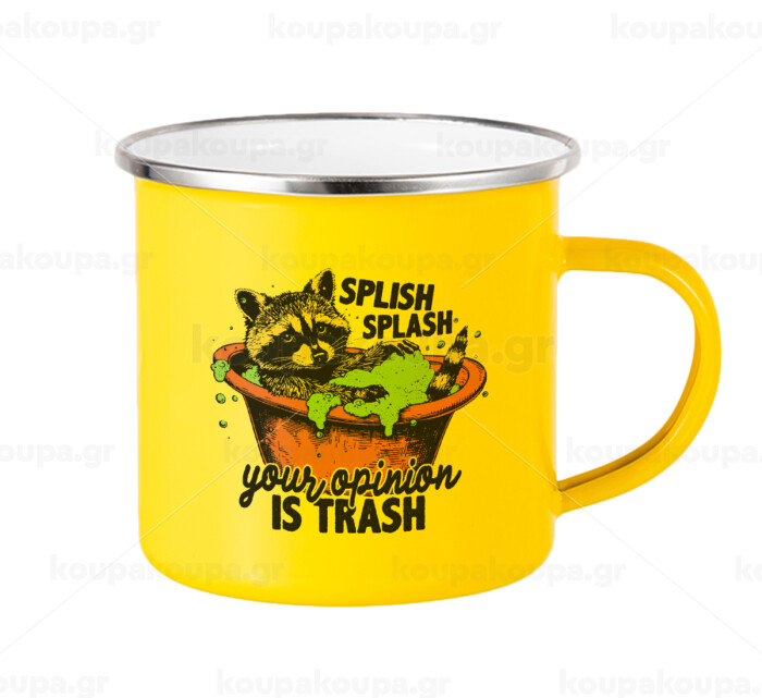 Splish splash your opinion is trash, Yellow Enamel Metallic Cup 360ml