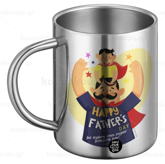 Happy Fathers Day με όνομα, BIG Mug Stainless steel double wall (450ml)