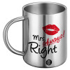 Mrs always right kiss, BIG Mug Stainless steel double wall (450ml)
