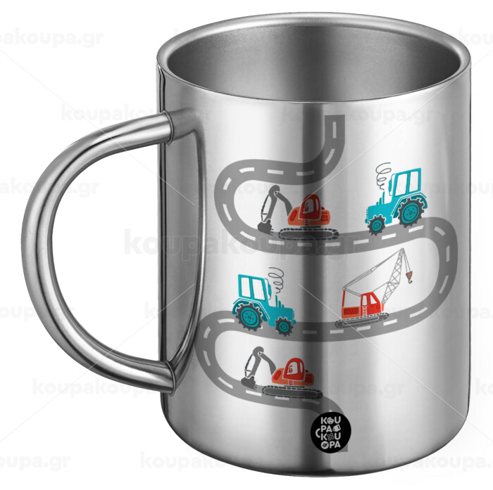 excavator along road, BIG Mug Stainless steel double wall (450ml)