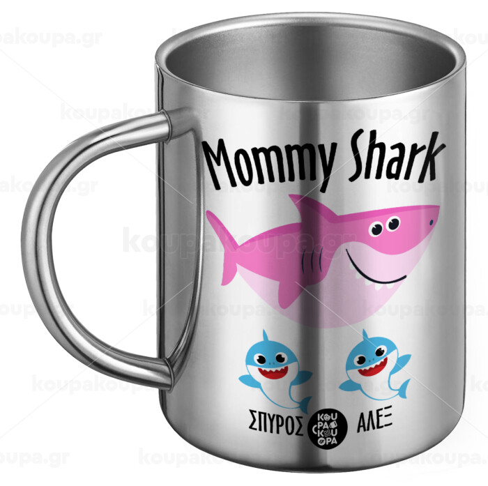 Mommy Shark (με ονόματα παιδικά), BIG Mug Stainless steel double wall (450ml)