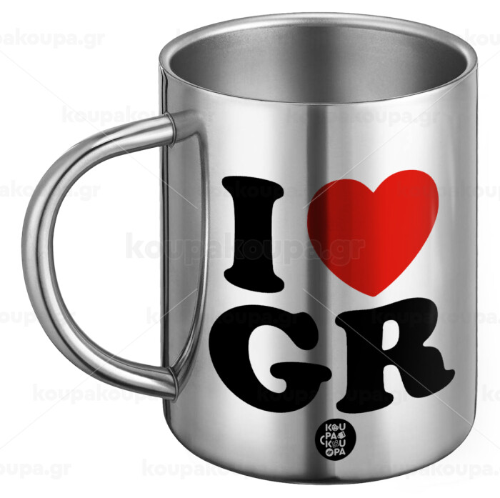 I Love GR, BIG Mug Stainless steel double wall (450ml)