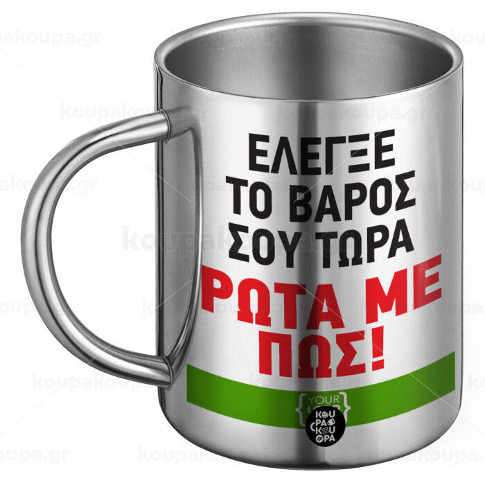 Έλεγξε το βάρος σου ρώτα με πως! {your logo here}, BIG Mug Stainless steel double wall (450ml)