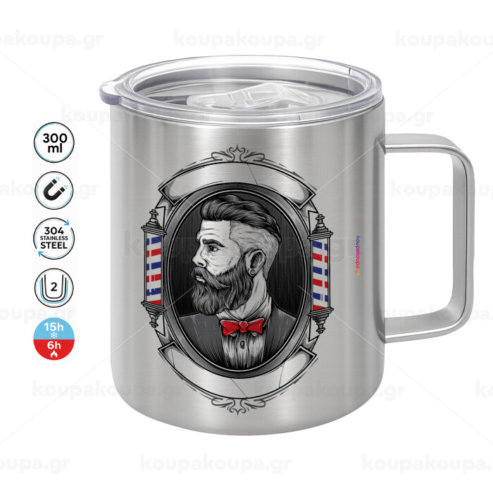 Stainless steel cup (300ml) with double wall of excellent quality. Suitable for hot and cold drinks. Hand wash recommended. The double wall keeps the temperature of the drink inside and allows you to embrace your drink.