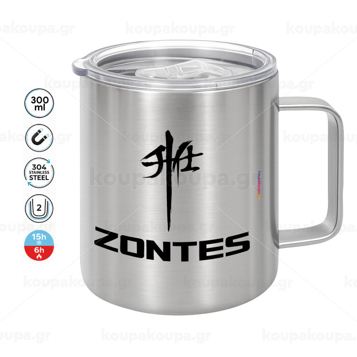 Stainless steel cup (300ml) with double wall of excellent quality. Suitable for hot and cold drinks. Hand wash recommended. The double wall keeps the temperature of the drink inside and allows you to embrace your drink.