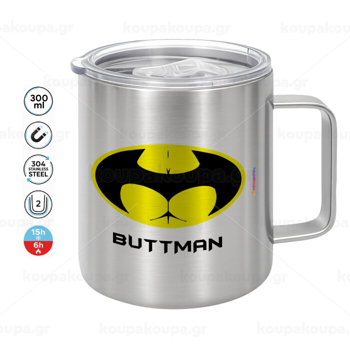 Stainless steel cup (300ml) with double wall of excellent quality. Suitable for hot and cold drinks. Hand wash recommended. The double wall keeps the temperature of the drink inside and allows you to embrace your drink.