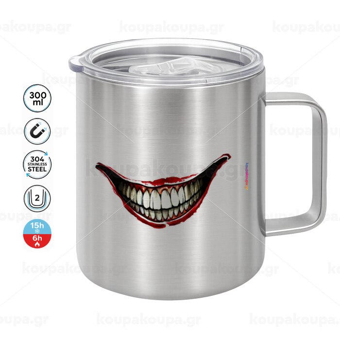 Stainless steel cup (300ml) with double wall of excellent quality. Suitable for hot and cold drinks. Hand wash recommended. The double wall keeps the temperature of the drink inside and allows you to embrace your drink.