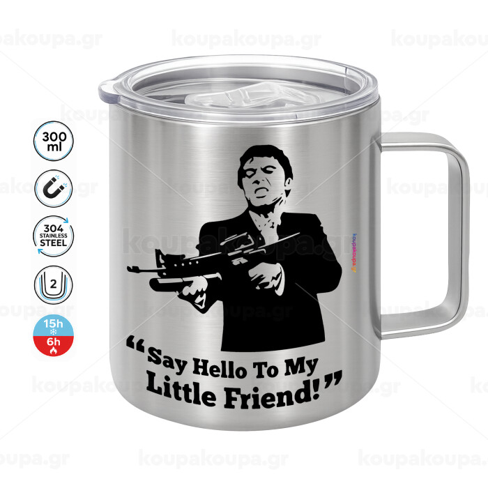 Stainless steel cup (300ml) with double wall of excellent quality. Suitable for hot and cold drinks. Hand wash recommended. The double wall keeps the temperature of the drink inside and allows you to embrace your drink.