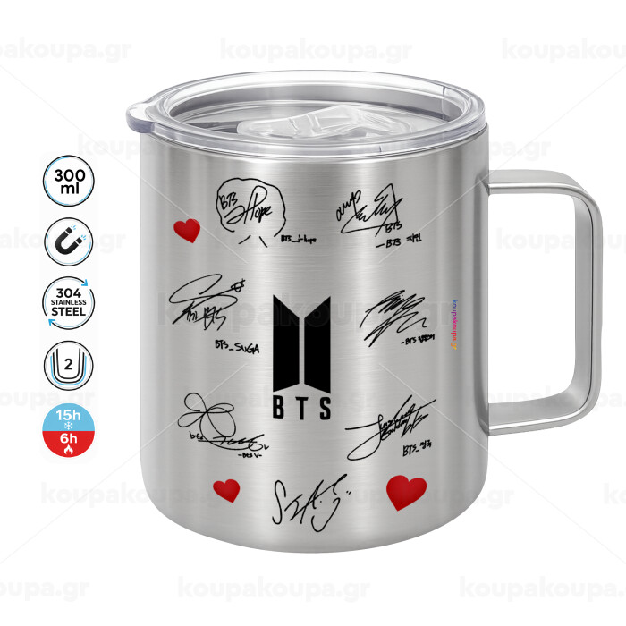 Stainless steel cup (300ml) with double wall of excellent quality. Suitable for hot and cold drinks. Hand wash recommended. The double wall keeps the temperature of the drink inside and allows you to embrace your drink.