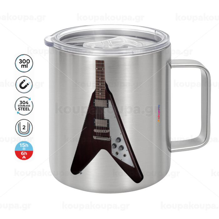 Guitar flying V, Mug Stainless steel double wall 300ml