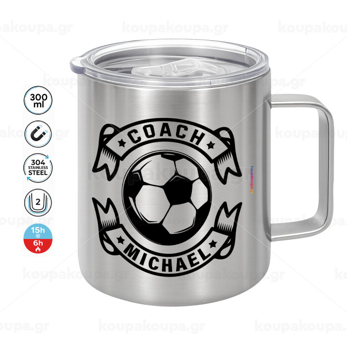 Stainless steel cup (300ml) with double wall of excellent quality. Suitable for hot and cold drinks. Hand wash recommended. The double wall keeps the temperature of the drink inside and allows you to embrace your drink.