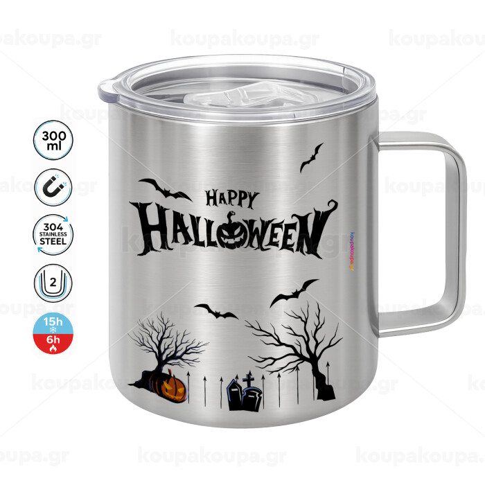 Happy Halloween cemetery, Mug Stainless steel double wall 300ml