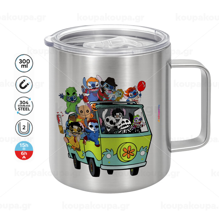 Stitch Halloween scooby car, Mug Stainless steel double wall 300ml