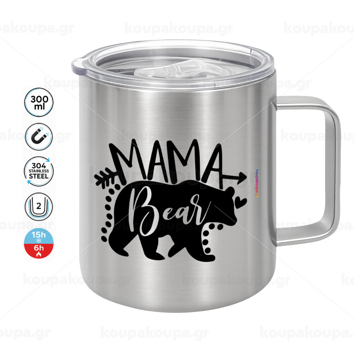 Stainless steel cup (300ml) with double wall of excellent quality. Suitable for hot and cold drinks. Hand wash recommended. The double wall keeps the temperature of the drink inside and allows you to embrace your drink.