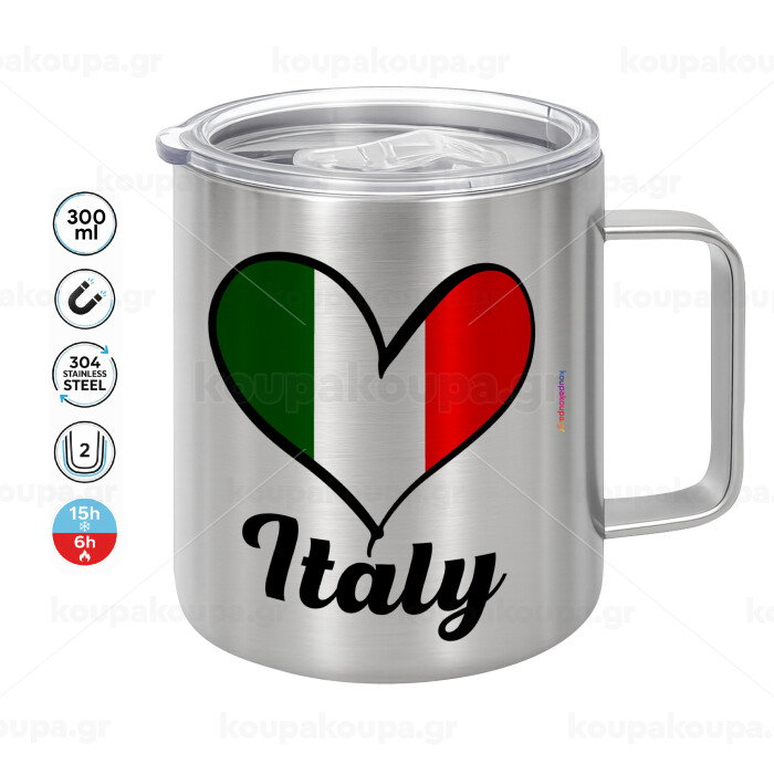 Stainless steel cup (300ml) with double wall of excellent quality. Suitable for hot and cold drinks. Hand wash recommended. The double wall keeps the temperature of the drink inside and allows you to embrace your drink.