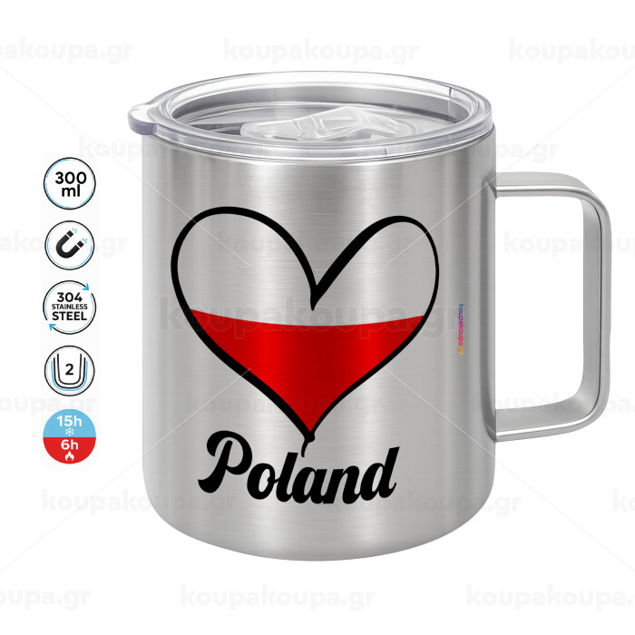 Stainless steel cup (300ml) with double wall of excellent quality. Suitable for hot and cold drinks. Hand wash recommended. The double wall keeps the temperature of the drink inside and allows you to embrace your drink.
