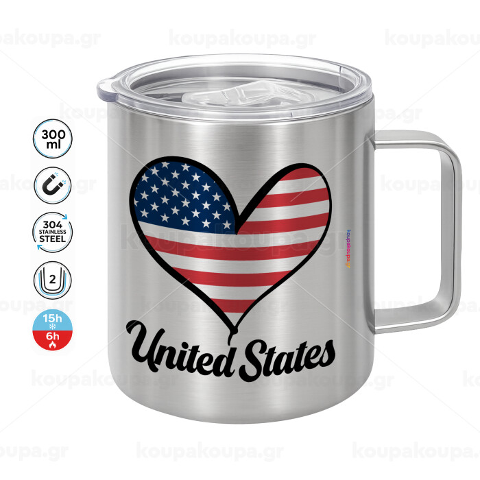 Stainless steel cup (300ml) with double wall of excellent quality. Suitable for hot and cold drinks. Hand wash recommended. The double wall keeps the temperature of the drink inside and allows you to embrace your drink.