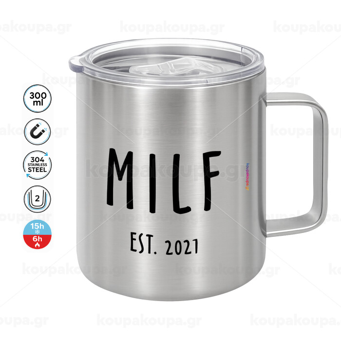 Stainless steel cup (300ml) with double wall of excellent quality. Suitable for hot and cold drinks. Hand wash recommended. The double wall keeps the temperature of the drink inside and allows you to embrace your drink.