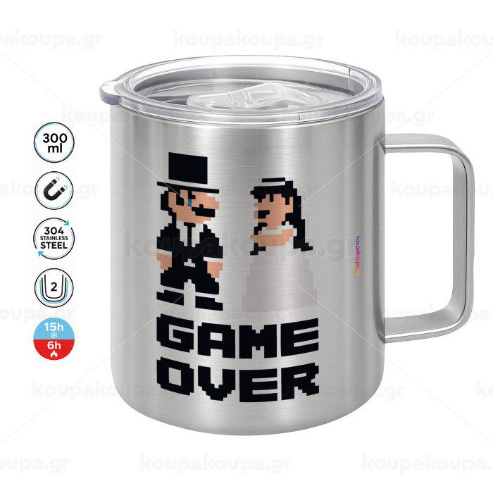 8bit Game Over Couple Wedding, Mug Stainless steel double wall 300ml