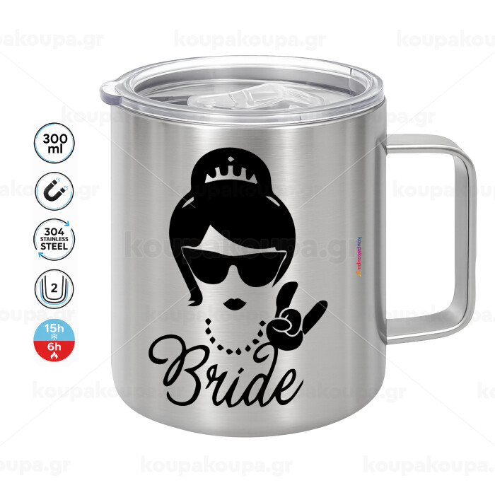 Stainless steel cup (300ml) with double wall of excellent quality. Suitable for hot and cold drinks. Hand wash recommended. The double wall keeps the temperature of the drink inside and allows you to embrace your drink.