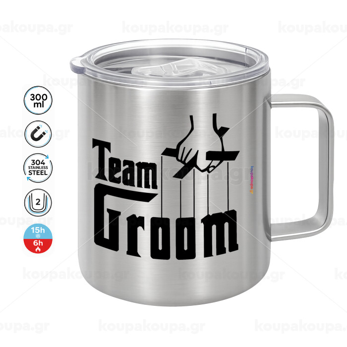 Stainless steel cup (300ml) with double wall of excellent quality. Suitable for hot and cold drinks. Hand wash recommended. The double wall keeps the temperature of the drink inside and allows you to embrace your drink.