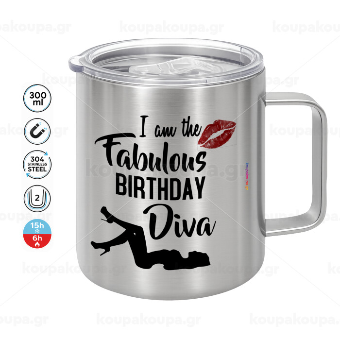 I am the fabulous Birthday Diva, Mug Stainless steel double wall 300ml