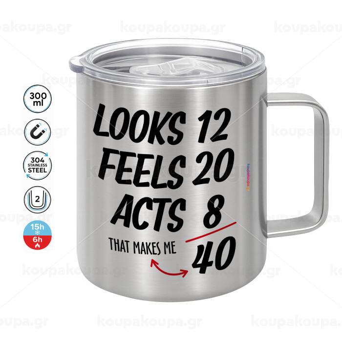 Looks, feels, acts LIKE your AGE, Mug Stainless steel double wall 300ml