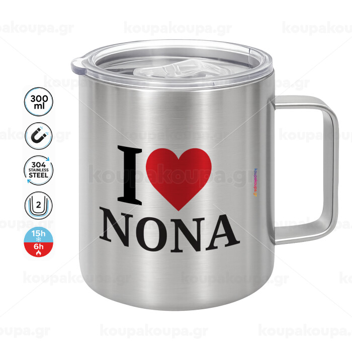 I Love ΝΟΝΑ, Mug Stainless steel double wall 300ml