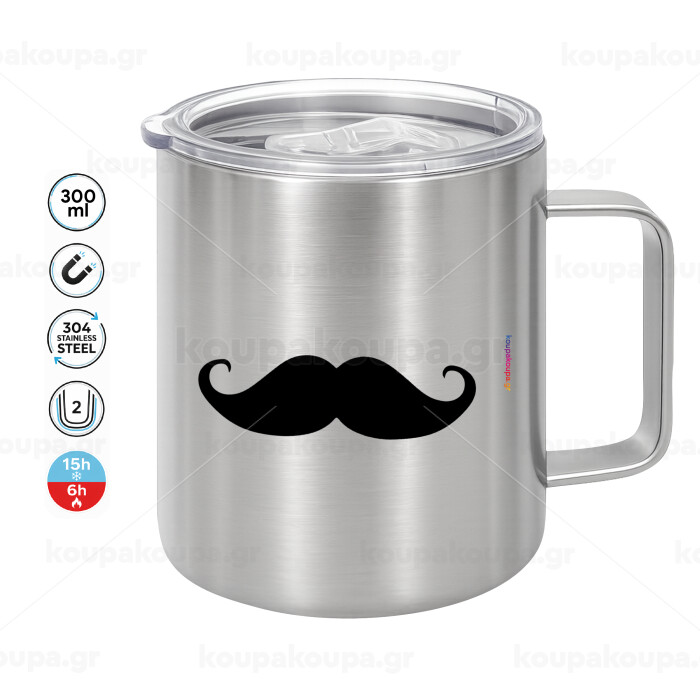 Stainless steel cup (300ml) with double wall of excellent quality. Suitable for hot and cold drinks. Hand wash recommended. The double wall keeps the temperature of the drink inside and allows you to embrace your drink.