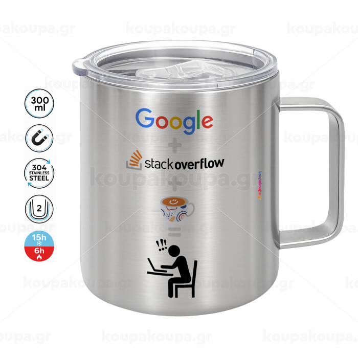 Google + Stack overflow + Coffee, Mug Stainless steel double wall 300ml