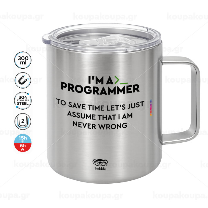 I’m a programmer Save time, Mug Stainless steel double wall 300ml
