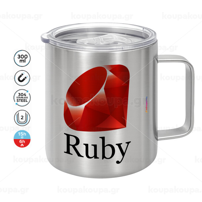 Stainless steel cup (300ml) with double wall of excellent quality. Suitable for hot and cold drinks. Hand wash recommended. The double wall keeps the temperature of the drink inside and allows you to embrace your drink.