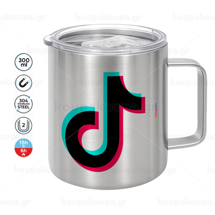 Stainless steel cup (300ml) with double wall of excellent quality. Suitable for hot and cold drinks. Hand wash recommended. The double wall keeps the temperature of the drink inside and allows you to embrace your drink.