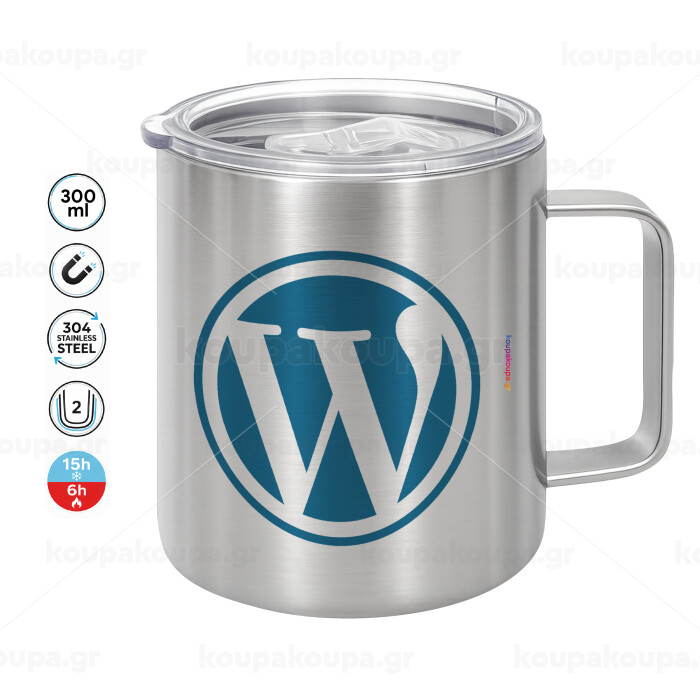 Stainless steel cup (300ml) with double wall of excellent quality. Suitable for hot and cold drinks. Hand wash recommended. The double wall keeps the temperature of the drink inside and allows you to embrace your drink.