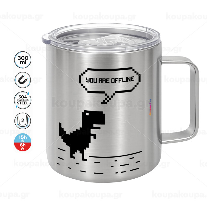 You are offline dinosaur, Mug Stainless steel double wall 300ml