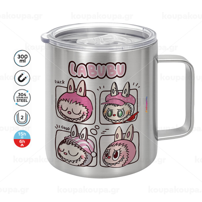 Stainless steel cup (300ml) with double wall of excellent quality. Suitable for hot and cold drinks. Hand wash recommended. The double wall keeps the temperature of the drink inside and allows you to embrace your drink.
